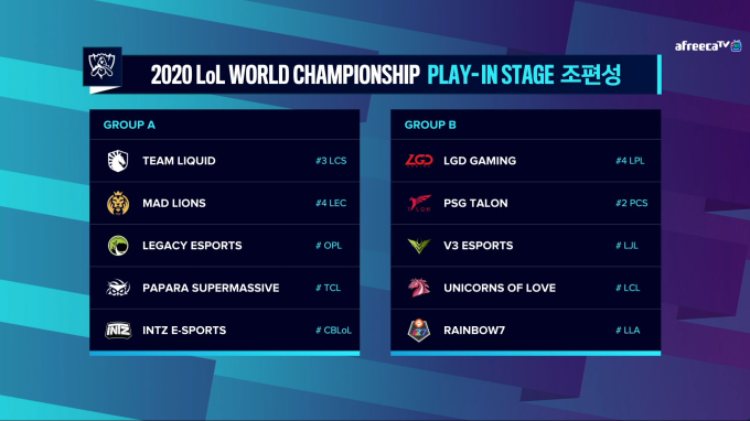C조는 젠지와 함께 북미의 1시드인 팀 솔로미드(TSM), 유럽의 2시드 프나틱이 자리했다. D조에는 DRX와 함께 중국의 1시드인 탑 이스포츠(TES), 북미의 2시드 플라이 퀘스트가 포함됐다. 이들 역시 나머지 한 자리는 플레이-인 통과 팀들이 채운다.