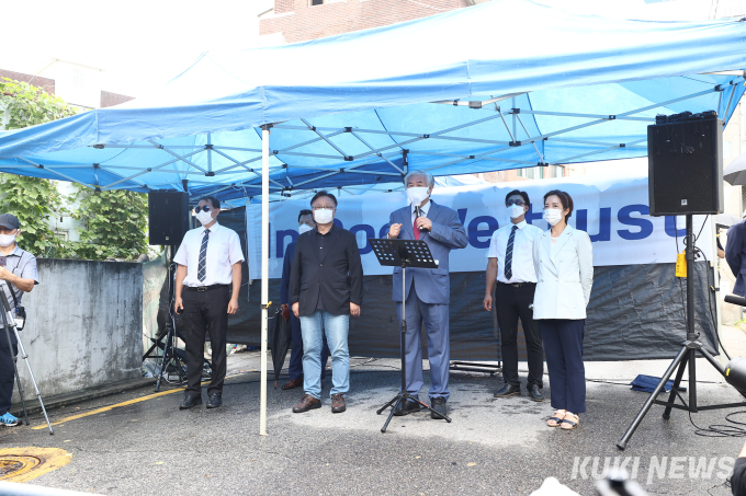사랑제일교회 변호인단은 20일 서울 성북구 사랑제일교회 앞에서 기자회견을 열고 "교회를 상대로 손해배상청구를 한 서울시에 대해 교회도 서울시에 반소로 손해배상청구를 하겠다"고 밝혔다.