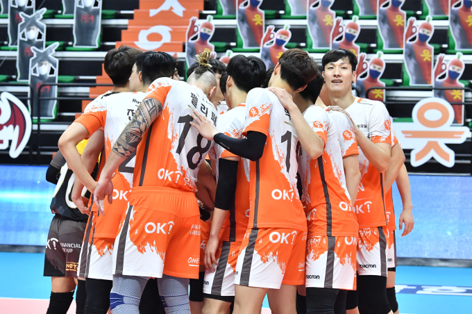 OK금융그룹은 22일 안산 상록수체육관에서 열린 ‘도드람 2020~2021 V-리그 남자부’ 한국전력과 경기에서 세트스코어 3대 1(25-19, 27-25, 19-25, 25-15) 승리를 거뒀다.