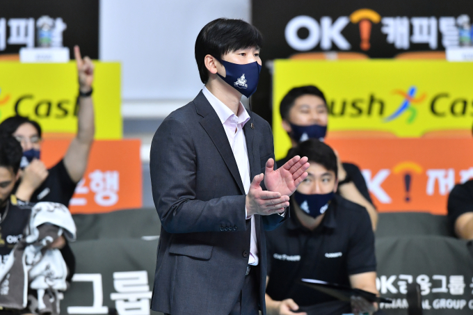 석진욱 감독이 이끄는 OK금융그룹은 22일 안산 상록수체육관에서 열린 ‘도드람 2020~2021 V-리그 남자부’ 한국전력과 경기에서 세트스코어 3대 1(25-19, 27-25, 19-25, 25-15) 승리를 거뒀다.
