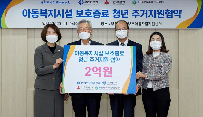 주금공은 이번 협약을 통해 성년이 되어 아동복지시설의 보호가 종료되는 부산지역 청년들의 월세·공과금을 지원하고, 부산 보호아동자립지원센터의 청년 자립생활관을 개·보수 할 수 있도록 2억원을 기부했다.