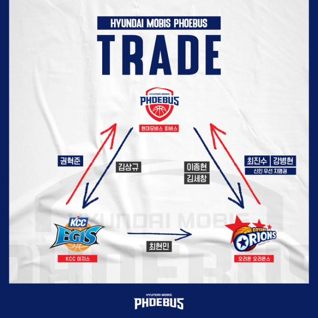 현대모비스가 오리온, 전주 KCC와 3각 트레이드를 단행한 것이다.