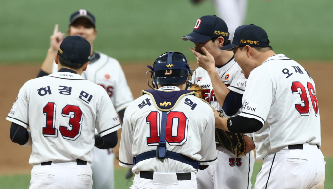 6대 6으로 맞선 7회말에는 1루 대주자로 나간 오재원이 NC의 연속 폭투를 틈타 3루까지 진루했다. 그러자 김재호가 깨끗한 중전 적시타를 뽑아 동점 균형을 깼다.