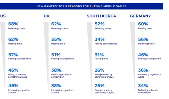 코로나19의 세계적 대유행이 본격적으로 시작된 지난해 3월부터 모바일 게임 분야의 잠재 고객은 가파른 증가세를 보였다. 페이스북의 보고서에 따르면 조사 대상국 전체 신규 게이머의 41%는 2020년 모바일 게임을 시작하게 된 이유로 ‘자유 시간의 증가’를 꼽았다.