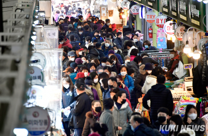 [쿠키뉴스] 박효상 기자 = 설 연휴 첫날인 11일 오후 서울 강서구 방신재래시장이 시민들로 붐비고 있다.