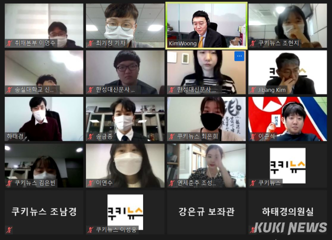 쿠키뉴스와 국민의힘은 15일 국회의원회관에서 요즘것들연구소-학보사 기자 간담회를 개최했다. 화상회의 시스템 줌(Zoom)으로도 진행한 이 행사에는 김지방 쿠키뉴스 대표, 각 대학 학보사 기자들, 하태경‧김웅‧황보승희‧임이자 등 국민의힘 의원들, 이준석 전 국민의힘 최고위원이 참석했다.
