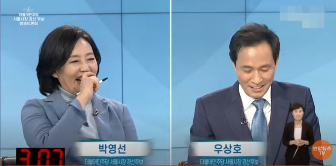 민주당은 17일 연합뉴스TV가 주최하는 박영선-우상호 서울시장 경선 TV 토론회를 개최했다.