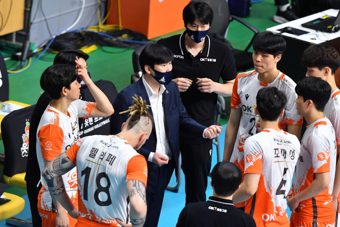 1세트만 해도 좋은 분위기를 이어갔던 OK금융그룹은 2세트부터 갑자기 무너졌다. 특히 2세트 중반에는 포지션 폴트를 범하는 등 실수도 나왔다. 이를 두고 석 감독은 “최근에 1세트 집중력은 좋은데 2~3세트부터는 집중력이 떨어지는 모습”이라고 아쉬워했다.