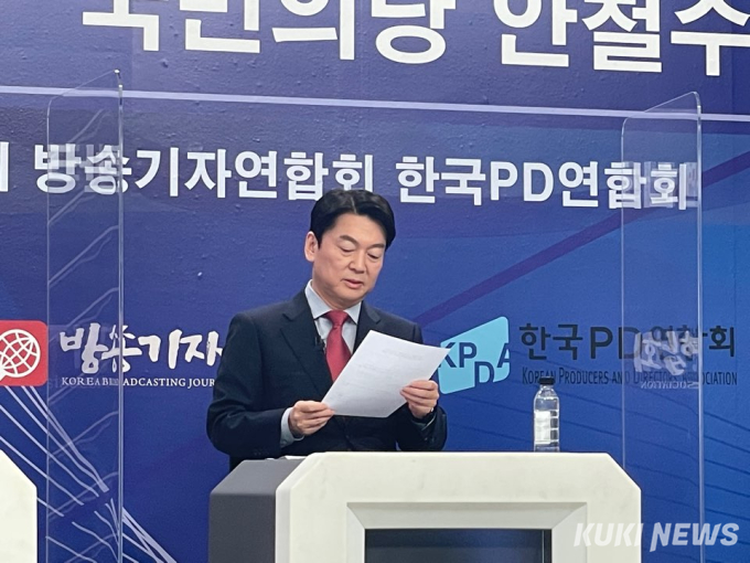 이후 안 후보는 자리에 앉아 마스크를 벗고 모두발언 내용이 담긴 인쇄물을 읽었다. 그동안 ‘토론 실력’이 도마 위에 올랐던 것을 의식한 듯 토론회에 대한 고민이 많아 보였다.