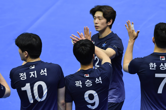 한선수는 1세트 중반 교체 투입돼 황승빈 대신 잠시 팀을 이끌었다.
