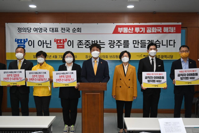 여 대표는 7일 오전 광주광역시의회 브리핑룸에서 기자회견을 열고 “광주도 부동산 투기 공화국의 예외가 아니다”라며 “국회는 보궐선거가 끝나자마자 이해충돌방지법을 통과시켜야 한다”고 강조했다.