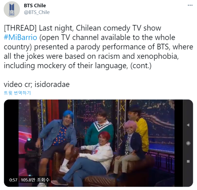 사건을 공론화한 칠레의 아미(방탄소년단)는 “아시아계를 향한 차별적 공격이 전 세계에서 발생하는 상황에서 이번 방송은 특히 부적절했다”고 목소리를 높였다.