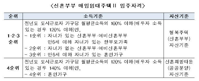 입주자격은 일정 소득·자산요건을 충족하는 무주택 신혼부부 등으로, 이번 공고부터는 신혼부부 외 ‘일반 무자녀 혼인가구’를 대상으로 소득·자산기준을 완화한 ‘4순위 혼인가구’ 모집이 신설됐다.