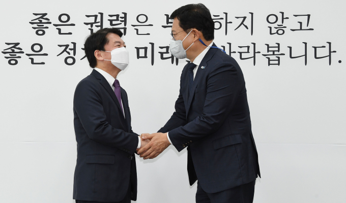 [쿠키뉴스] 최기창 기자 =송영길 더불어민주당 대표가 안철수 국민의당 대표를 만나 새 정치에 관한 덕담을 건넸다. 반면 안 대표는 선거로 드러난 청년들의 목소리를 들어야 한다고 강조했다.