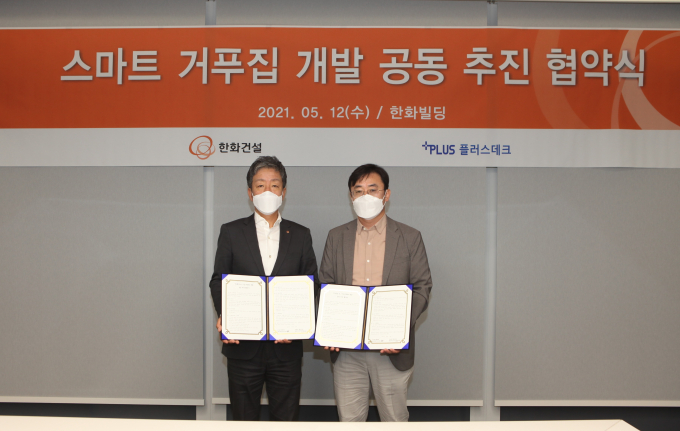 한화건설은 5월 12일 서울 장교동 한화빌딩에서 ㈜플러스데크와 ‘스마트 거푸집 개발 공동 추진 협약’을 진행했다고 밝혔다.