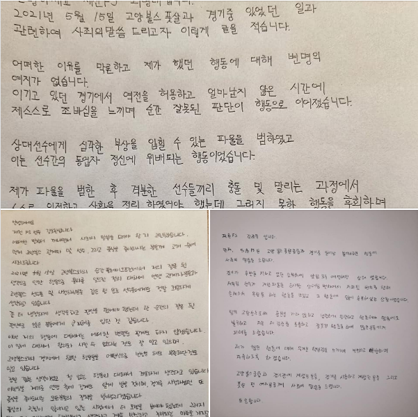 한 누리꾼은 "이전 경기 영상들을 보니 팀 자체에 문제가 많았던 것 같다"면서 "(경기 중 폭력이) 한두 번 있던 게 아니라 전례가 많던데 이번에 논란이 안 됐으면 또 어물쩍 넘어갔을 것"이라고 비판했다.