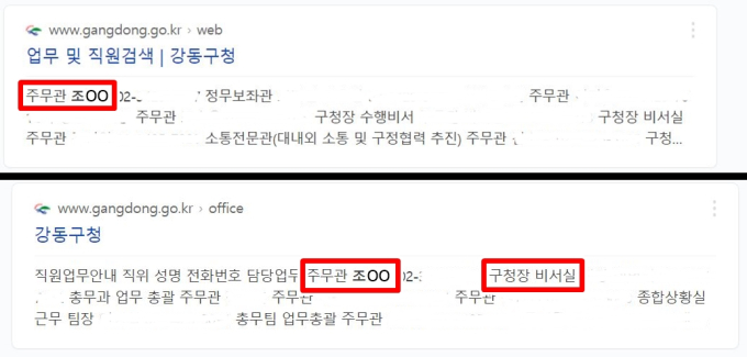 이에 대해 강동구청 전산 담당 공무원은 “왜 이 사항이 궁금한지 모르겠다”고 답했다. 다만 또 다른 공무원은 “해당 홈페이지는 내부 인사 시스템과 연동되기에 임의로 수정할 수 없다”고 해명했다.