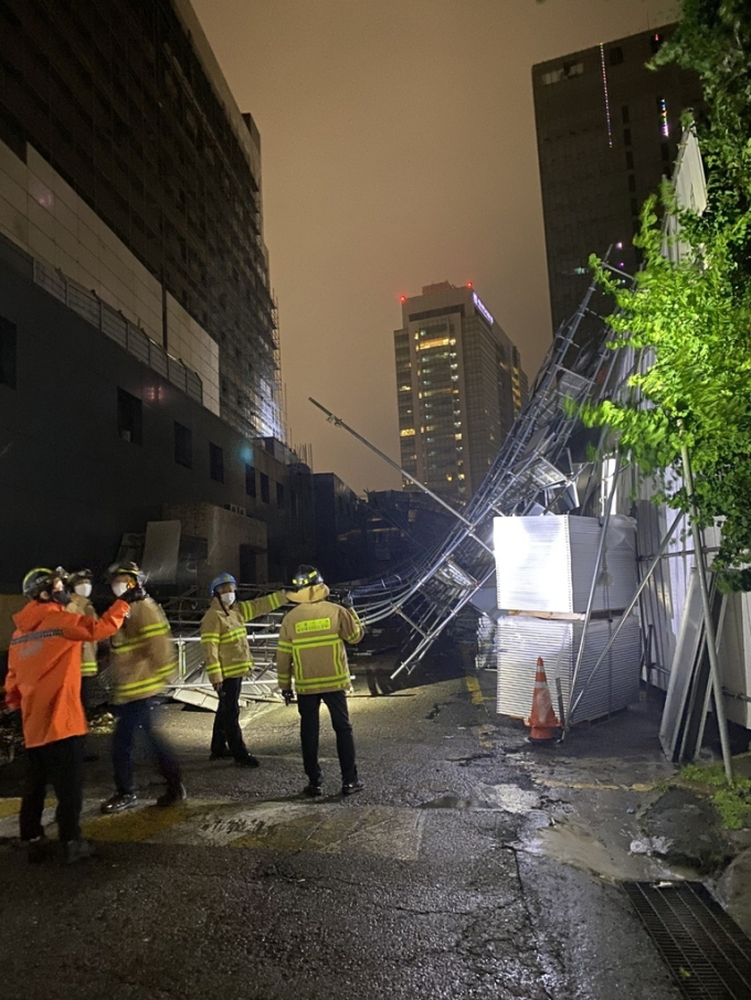 [쿠키뉴스] 안세진 기자 =업계에 따르면 11일 오전 1시 55분께 서울 서초구 반포동의 쉐라톤 팔레스호텔 철거 현장에서 시스템 비계(높은 곳에서 작업할 수 있도록 설치하는 일체형 작업발판)가 인근 아파트 주차장 쪽으로 쓰러지는 사고가 일어났다.