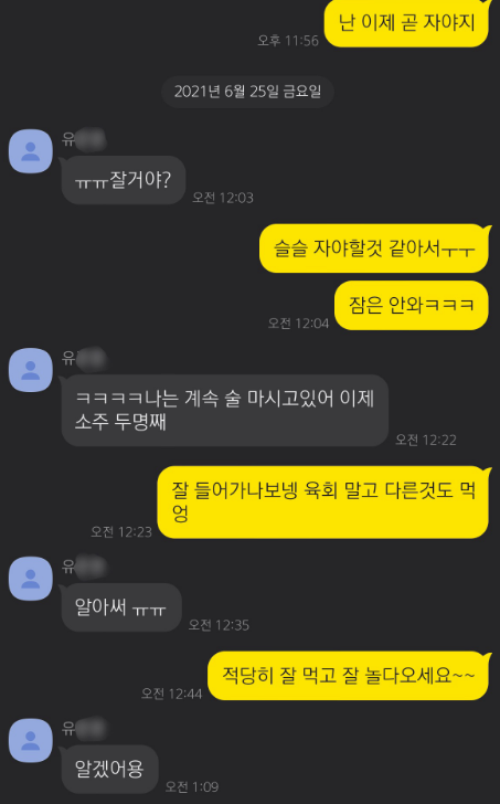 B씨는 6월 24일 A씨가 군대 선임을 만난다며 신촌에 갔고 술을 마신 뒤 외박을 했다고 말했다. "적당히 마셔라" "잘거야?" 등 새벽까지 이어진 두 사람이 나눈 대화는 평범한 커플의 모습이었다.