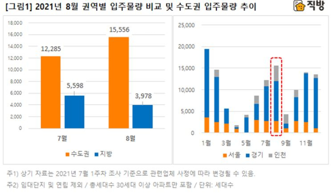 26일 직방에 따르면 다음달인 8월 전국 입주 물량은 총 1만9534세대로 집계됐다. 이 중 80%인 1만5556세대가 서울과 경기·인천 등 수도권에 집중된다.