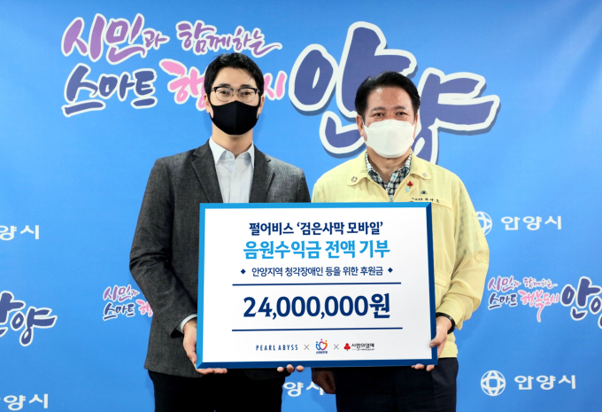 [쿠키뉴스] 강한결 기자 = 펄어비스가 경기도 안양시에 검은사막 모바일 ‘격투가X질풍가도’와 ‘모험가(歌)’ 콜라보 음원 수익금 2400만원을 전달했다.