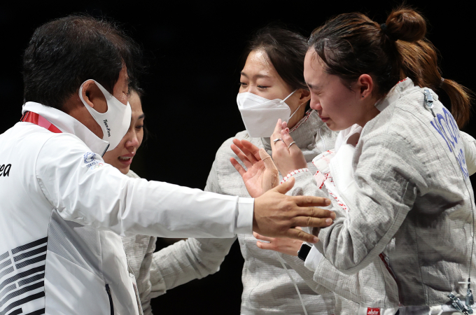 김지연과 윤지수, 최수연, 서지연으로 구성된 한국 대표팀은 31일 일본 지바 마쿠하리메세에서 열린 ‘2020년 도쿄 올림픽’ 펜싱 여자 사브르 단체 준결승전에서 세계 랭킹 1위 러시아올림픽위원회(ROC)에 26-45로 완패했다.