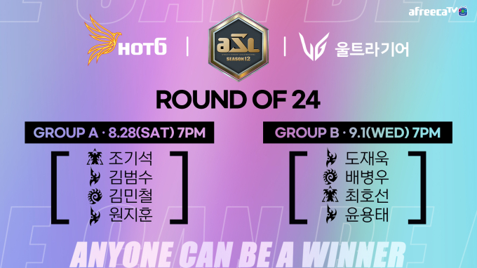 오후 7시부터 시작하는 개막전 24강 1주차에는 조기석(T), 김범수(P), 김민철(Z), 원지훈(P)이 출전한다. 첫 경기에는 꾸준히 ASL에 진출오며 테란의 부흥을 이끄는 조기석과 3번째 ASL 진출로 최근 기세가 뛰어난 김범수가 맞붙는다. 반대편에선 ‘철벽’ 김민철과 신예 프로토스 원지훈이 맞붙는다.