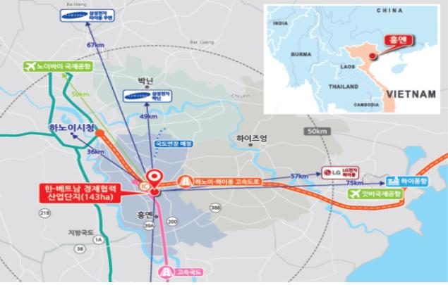 한-베 경제협력 산업단지는 베트남 수도 하노이에서 약 30km 떨어진 흥옌(Hung Yen)성 코아이쩌우현, 안티현에 1431천㎡(약 43만평) 규모로 건설된다. 흥옌성은 서울의 1.5배 면적, 인구 약 120만명의 도시로서, 하노이와 하이퐁을 연결하는 북부 경제벨트에 위치해 외국인 투자의 지속적인 증가로 안정적인 성장을 유지하는 지역이다.