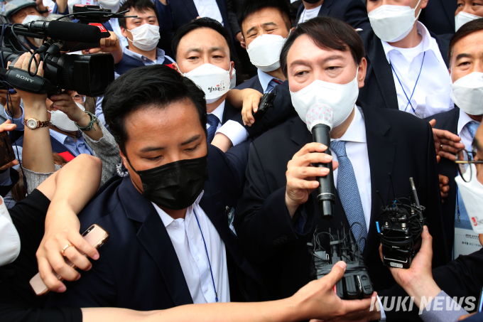 다만 윤 후보가 적절하게 대응할 수 있을지는 여전히 물음표다. 윤 후보는 8일 오후 국회 소통관에서 기자회견을 열고 억울함을 호소하며 “인터넷 매체나 무슨 제소자, 의원들의 면책 특권 등에 숨지 말고 우리 국민이 다 아는 그런 메이저 언론을 통해서 문제를 제기하라”며 다소 안일한 언론 인식을 드러내기도 했다.