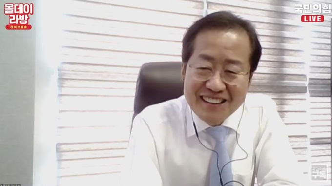 홍 후보는 12일 서민 단국대 의대 교수가 ‘개그맨 시험본 것이 사실인가’라고 묻자 “10월 유신이 선포되면서 못 봤다”고 답했다. 홍 후보는 이날 오후 진행된 토크쇼 ‘올데이 라방’에 화상으로 참여했다.