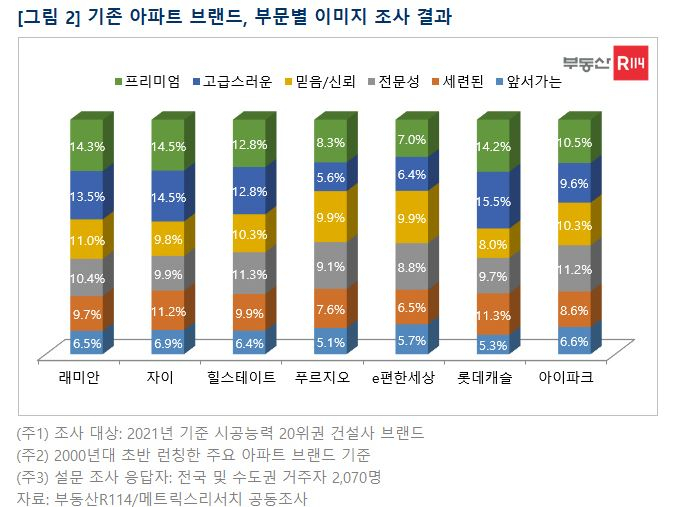 부동산114와 메트릭스리서치가 공동으로 조사한 ‘아파트 브랜드 이미지’ 설문조사의 오차 범위는 95% 신뢰수준에 ±2.15%p다.