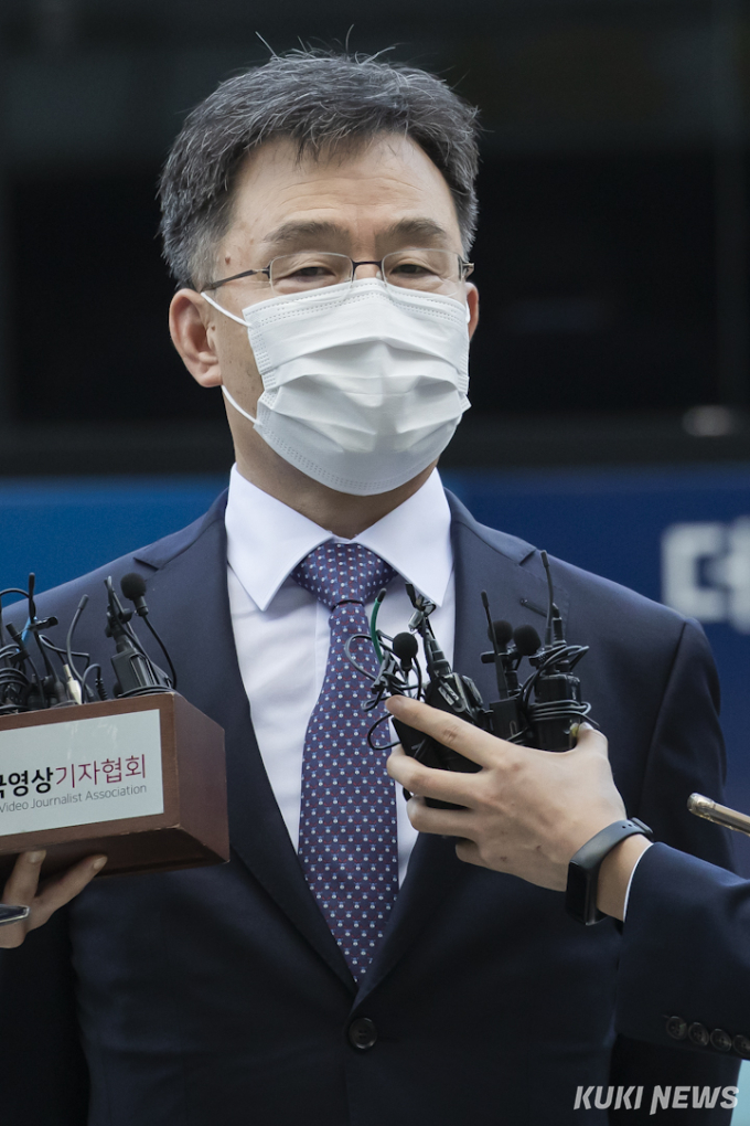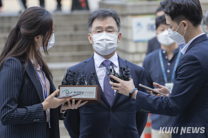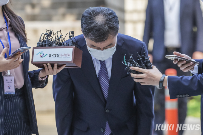 [쿠키뉴스]임형택 기자 =대장동 개발 로비·특혜 의혹의 핵심 인물인 화천대유자산관리(화천대유) 대주주 김만배 씨가 구속 전 피의자심문(영장실질심사)을 받기위해 14일 서울 서초구 서울중앙지방법원에 출석하고 있다.