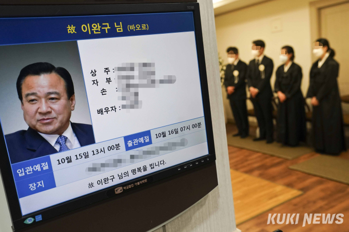 [쿠키뉴스] 임형택 기자 =15일 오후 서울 서초구 서울성모병원 장례식장에 마련된 이완구 전 국무총리의 빈소에 영정사진이 놓여있다.