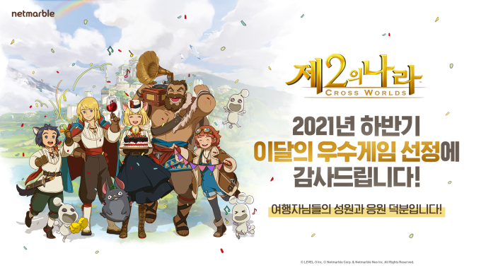 [쿠키뉴스] 문대찬 기자 =넷마블은 감성 모험 RPG ‘제2의 나라: Cross Worlds(이하 제2의 나라)’가 ‘2021 하반기 이달의 우수게임’ 일반 게임 부문에 선정됐다고 20일 밝혔다.
