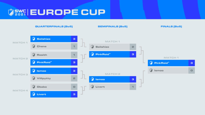 먼저 전략적 밴픽으로 이번 대회 강력한 우승 후보로 떠오르고 있는 PINKROID는 8강에서 ‘SWC2019’ 유럽컵 우승자인 ROSITH를 상대로 3:1 승리한 데 이어, 2018년 파이널리스트인 CHENE을 꺾고 올라온 유럽컵 단골 선수 SEIISHIZO를 4강에서 3:2로 잇따라 꺾으며 유럽컵 첫 번째 월드 파이널 진출권을 따냈다.