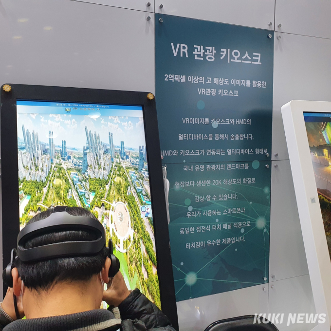 행사장 안에는 다양한 기업의 부스가 있었다. 가장 먼저 눈에 들어온 것은 VR(가상현실)장비를 이용한 관광 키오스크였다. 드론이 촬영한 20~30여 장의 항공사진을 하나로 모아 3D사진으로 제작한 것인데, 부산 해운대·서울 시내 풍경 등 다양한 국내 관광 명소를 한눈에 즐길 수 있었다.