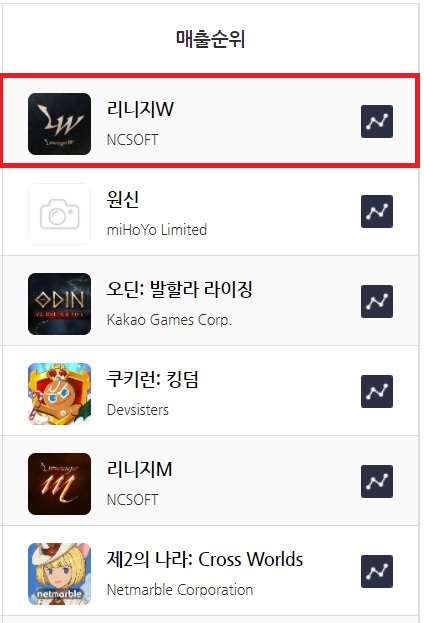 하지만 매출에선 성과를 거뒀다. 모바일 빅데이터 분석 플랫폼 모바일인덱스에 따르면 ‘리니지W’는 애플 앱스토어에서 카카오게임즈의 ‘오딘: 발할라 라이징’을 제치고 매출 1위를 기록했다.