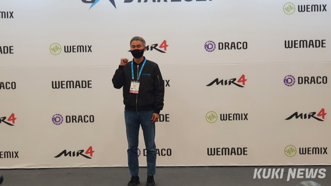 장 대표는 부산 벡스코(BEXCO)에서 진행 중인 국제게임전시회 '지스타(G-STAR) 2021' 현장에서 기자간담회를 진행했다. 이날 행사는 최근 블록체인 기반의 대체불가능한 코인(NFT) 기술을 적용해 주목받고 있는 ‘미르4’에 대한 질문 위주로 진행됐다.