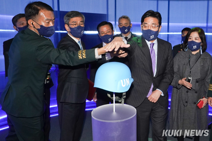 함상욱 외교부 다자외교조정관(왼쪽 두번째부터)과 김만기 국방부 정책실장, 최종문 외교부 제2차관이 3일 서울 중구 동대문디자인플라자(DDP)에서 열린 '2021 서울 유엔 평화유지 장관회의 계기 특별 전시회' 평화를 지키는 푸른힘 전시에서 체험하고 있다.김만기 국방부 정책실장과 최종문 외교부 제2차관, 함상욱 외교부 다자외교조정관 등이 3일 서울 중구 동대문디자인플라자(DDP)에서 열린 '2021 서울 유엔 평화유지 장관회의 계기 특별 전시회' 스마트캠프, PKO의 미래를보다 전시를 살펴보고 있다.김만기 국방부 정책실장이 3일 서울 중구 동대문디자인플라자(DDP)에서 열린 '2021 서울 유엔 평화유지 장관회의 계기 특별 전시회'에서 CPR(심폐소생술)체험을 하고 있다.최종문 외교부 제2차관과, 김만기 국방부 정책실장, 함상욱 외교부 다자외교조정관이 3일 서울 중구 동대문디자인플라자(DDP)에서 열린 '2021 서울 유엔 평화유지 장관회의 계기 특별 전시회' 한반도 평화관 전시를 살펴보고 있다.3일 서울 중구 동대문디자인플라자(DDP)에서 열린 '2021 서울 유엔 평화유지 장관회의 계기 특별 전시회 개관식'에서 요아나 도너마르트 주한 네덜란드 대사(왼쪽 두번째부터), 함상욱 외교부 다자외교조정관, 최종문 외교부 제2차관, 김만기 국방부 정책실장, 뭄타즈 자흐라 발로치 주한 파키스탄 대사 등이 리본 커팅을 하고 있다.3일 서울 중구 동대문디자인플라자(DDP)에서 열린 '2021 서울 유엔 평화유지 장관회의 계기 특별 전시회 개관식'에 참석한 함상욱 외교부 다자외교조정관(두번째줄 세번째부터), 최종문 외교부 제2차관, 김만기 국방부 정책실장 등이 기념촬영을 하고 있다.