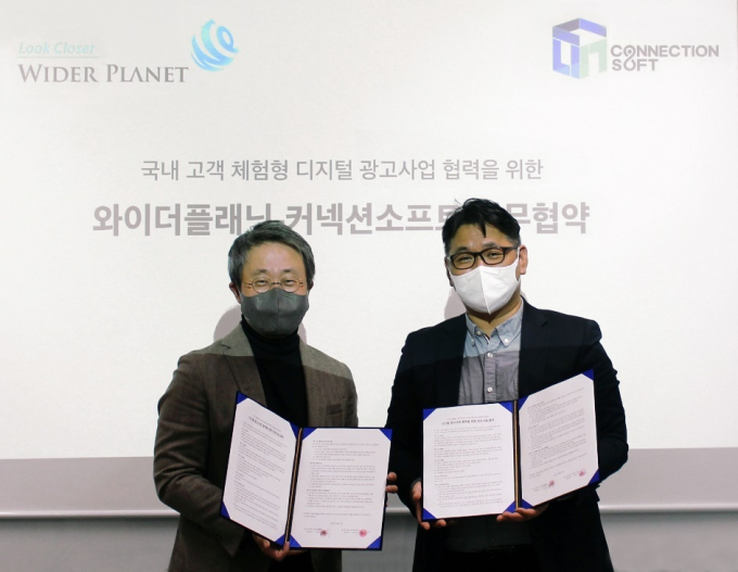 와이더플래닛은 ‘빅데이터 기반 마케팅 플랫폼 기업으로, 디지털 사용자의 기호와 관심을 빅데이터로 분석하고 이에 가장 적합한 개인 맞춤형 광고를 제공한다. 커넥션소프트는 가상의 스마트폰 서비스를 제공해 모바일 앱을 다운로드 받지 않고도 브라우저에서 실행할 수 있도록 만드는 기술을 가지고 있다. 이번 협약을 통해 와이더플래닛은 광고주에게 최적화된 유저를 선별해 효율적인 마케팅을 진행하고, 커넥션소프트는 브라우저에서 앱을 바로 실행시켜 유저를 유입시킬 전망이다.
