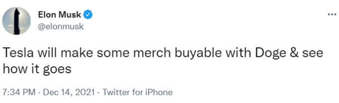 도지코인을 일부 테슬라 상품에 한정해 결제수단으로 도입하겠다는 의미다.