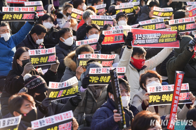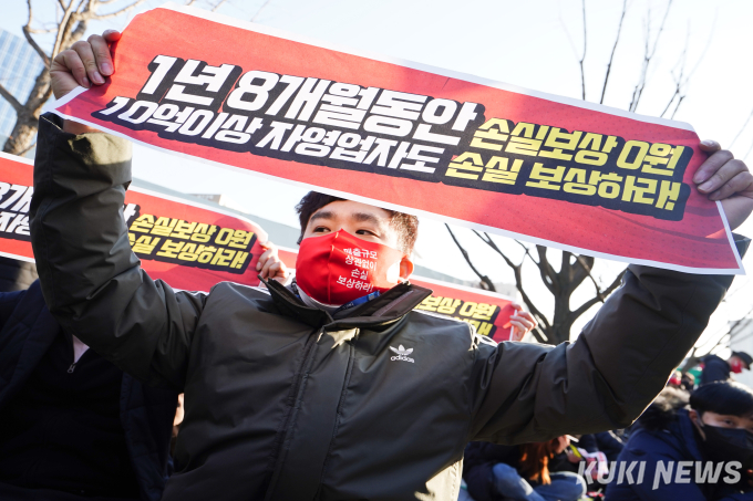 뿔난 자영업자... '영업제한·방역패스 철회하라' [쿠키포토]