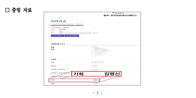 수원여대·안양대 이력서에 기재된 ‘서울국제만화애니메이션대상’ 수상 경력에 대해서는 “데이터베이스 ‘아라리스’에 ‘김명신(김씨의 개명 전 이름) 기획’으로 참여한 기록이 확인된다”며 증빙 자료를 첨부했다. 선대위는 “회사의 수상 경력을 그대로 옮겨 쓴 것으로 단체 수상임을 명기했어야 마땅했는데 그러지 못해 송구하다”고 밝혔다.