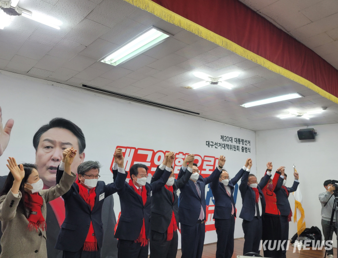 윤 후보는 대구 선대위 출범식에서 “얼마 전 문재인 대통령 취임사를 천천히 읽어봤다. 그 어떤 약속도 지켜지지 않았다”며 “많은 국민을 속였다. 국민을 똑같이 섬기겠다고 하면서 국민을 갈갈이 찢어놨다. 탈원전이 아무 문제가 없다더니 이제 선거가 끝나자마자 전기요금, 가스요금을 줄줄이 올린다고 한다”고 비판했다.