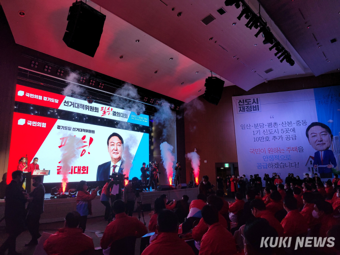 12일 오후 경기도 고양시 일산 킨텍스에서 경기도 선거대책위원회 출범식이 열렸다. 사진=조현지 기자 국민의힘이 12일 오후 경기도 고양시 일산 킨텍스에서 경기도 선거대책위원회 출범식을 열고 정권교체에 대한 의지를 다졌다.