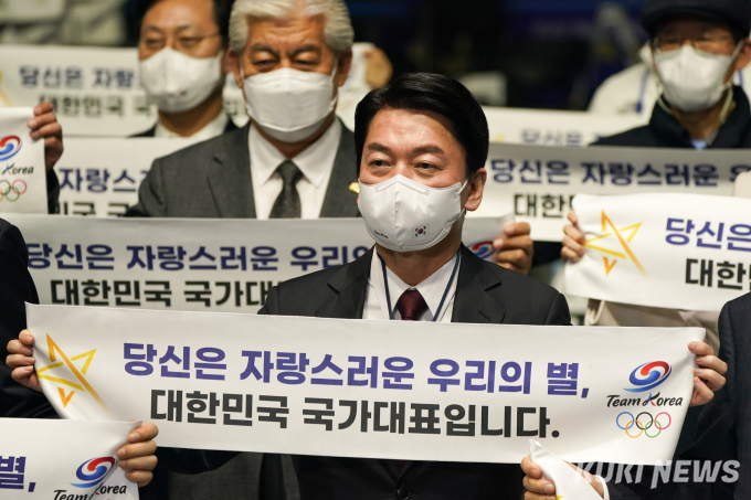 한편 윤석열과 안철수 두 후보는 행사 후 곧바로 올림픽공원 올림픽홀로 이동해 2022 베이징 동계올림픽 한국 선수단 결단식에 참석해 태극 전사의 선전을 기원했다.