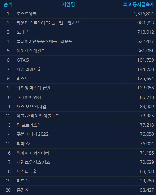 스마일게이트 측에 따르면 지난 11일 북미와 유럽, 남미와 호주 등 글로벌시장에 출시된 로스트아크의 최고 동시접속자수는 이틀 만에 132만 명을 넘었다. 북미와 유럽 등 서구권 시장 신규 가입자는 470만 명에 달했다. 2017년 8월 배틀그라운드가 기록한 약 325만 명에 이어 세계 두 번째로 최고 동시 접속자 수가 많은 게임이 됐다.