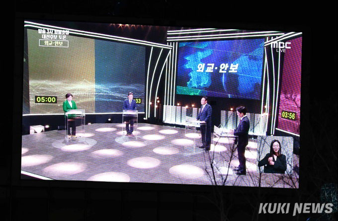 쿠키뉴스 취재를 종합하면 중앙선거관리위원회는 21일 저녁 서울 마포구 상암동 MBC미디어 센터 공개홀에서 열리는 중앙선거방송토론위원회 주관 제20대 대통령 선거 후보자 TV토론회에 단 한 명의 수어통역사만 배치한다.