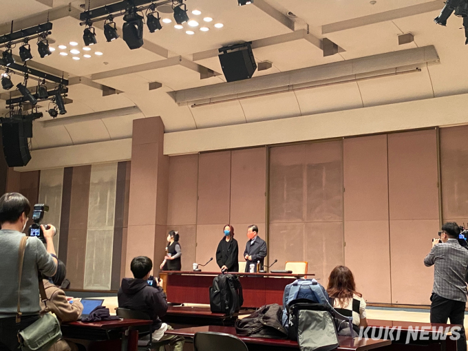 28일 김부선은 '굿바이 이재명'의 저자 장영하 변호사와 서울 한국프레스센터에서 기자회견을 열었다.