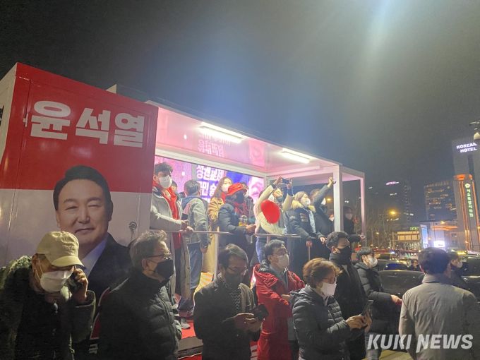 해당 유세 이후 윤 후보는 건대입구, 강남역 일대를 돌며 유권자들과 인사를 나눈 후 공식 선거 일정을 종료한다.